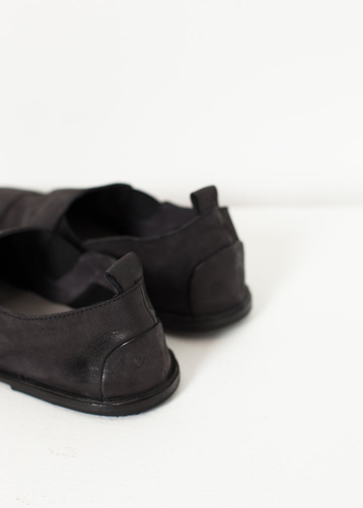 Married aesthetics of innovation and tradition, Marséll crafts shoes of mastering technique. Where modern classism takes wearable shape, anticipate artistic expression epitomized in leather footwear. The Low Chelsea Boot nods to the classic staple yet takes it's own personality. With sueded leather, and a rounded toe, this piece will aged courageously. Color Black. 100% Leather. Made in Italy.