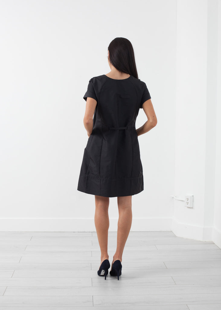 The Retenue Dress offers a wide neckline and a slightly oversized silhouette. Raglan seaming. Drawstring at back waist. Side angled pockets at front. Lilith. Color Black. 100% Polyester.